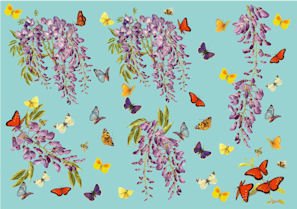 Бумага рисовая для декупажа 25 г/м2, 35X50 см, 10л/уп, Глицинии и бабочки