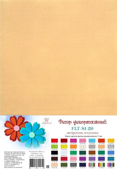 Фетр SOFT, Миндальное искушение, 180г, толщина 1 мм, в наборе 10 л.,Рукоделие, FLT-S1-29